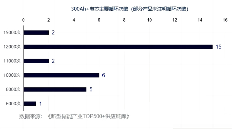 ■ Old size OR new specifications? At present, the large capacity cell mainly adopts two size paths: one is to use 280Ah size, using 71 * 173 square size, the cell capacity, most manufacturers in the market use this route; the other is to explore new specifications, such as the L500 type 325Ah energy storage in April 2023, thickness is only 21mm, 2 / 3 thinner than the current 280Ah energy storage cell, but longer length. The first way has high cell compatibility, which is conducive to system integration, but poses greater technical challenges to battery enterprises in heat dissipation, safety, manufacturing and cost. As the energy storage cells become bigger and bigger, will more energy storage enterprises explore new specifications suitable for large-capacity energy storage application scenarios? ■ 10,000 + cycle life as a benchmark? According to statistics, among the 40 energy storage large capacity cells, 25 have a cycle life of more than 10,000 times, accounting for more than half, of which 15 have more than 12,000 times. In 2024,10,000 + cycle life will become the industry benchmark (0.5C charging and discharging, 80% capacity retention rate).