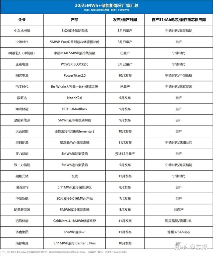 在電芯容量提升的同時,5MWh+儲能系統時代也已經到來。2023年,至少有20家儲能企業相繼發布基于314Ah/320Ah大電芯的20尺5MWh儲能系統。
